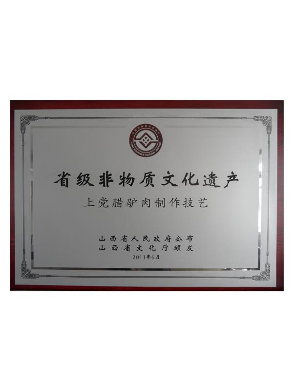 《本草綱目》第五十卷記載有:“驢肉味甘、無毒、解心煩、止風狂、能安心氣、補血益氣、治遠年勞損”的作用,尤其對失眠、健忘、眩暈、營養(yǎng)不良、貧血癥有獨特療效。上黨臘驢肉是山西長治市的漢族傳統(tǒng)名吃,其肉質(zhì)肥而不膩、瘦而不柴、香味四溢、回味無窮。早在明代,臘驢肉就已馳名于上黨和晉南地區(qū),產(chǎn)品遠銷北京、天津、南京等南北名城。臘驢肉與當?shù)氐臎龇?、酥火燒被稱為潞安府(長治古稱潞安府)三寶。